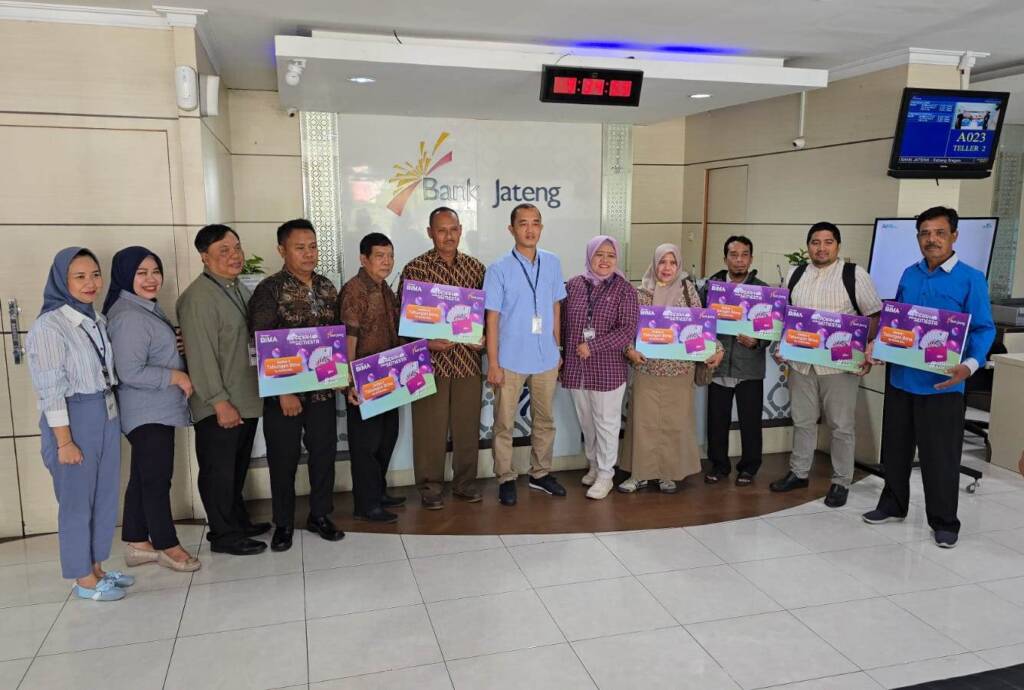 Simbolis penyerahan hadiah undian tabungan Bima Bank Jateng Cabang Sragen kepada 7 orang warga Sragen yang beruntung pada Kamis (29/1/2026) ||Foto Huri YantoSRAGEN, JOGLOSEMARNEWS.COM — Bank Jateng Cabang Sragen menyelenggarakan penyerahan hadiah undian tabungan Bima periode 1 tahun 2025 yang dilaksanakan di kantor Bank Jateng cabang Sragen di jalan raya Sukowati No.154 A, Kebayan 3, Sragen Kulon, Kecamatan Sragen, Kabupaten Sragen, Jawa Tengah pada Kamis (29/1/2026).