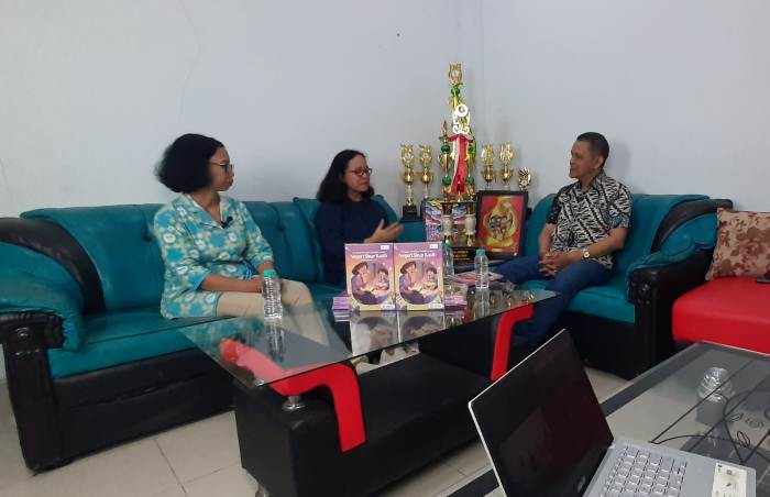 Dari kiri ke kanan, Kepala KB Sinar Kasih, Ernawati Ambarningrum, Ketua Yayasan PPKSK, Pdt. Wahyu Purwaningtyas dan Founder SeKata, Didik Kartika dalam sebuah perbincangan | SuhamdaniSOLO, JOGLOSEMARNEWS.COM – Dongeng, sejauh ini masih menjadi kebutuhan mendasar yang diperlukan oleh orangtua. Dan gadget, sekalipun perkembangannya cukup massif, tak bisa menggantikan posisi dongeng dalam tumbuh kembang anak.