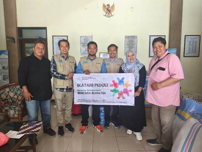 Kabid Komunikasi dan Media Massa Ikatani, Dr Hanifah Ihsaniyati (ketiga kiri) menyerahkan secara simbolik bantuan Ikatani Peduli kepada Tim UNS, Dr Agung Hidayat di Gedung PPLH UNS, Selasa (16/12/2025) | IstimewaDana bantuan tersebut dihimpun melalui program Ikatani Peduli pada pekan pertama Desember 2025. Total donasi yang terkumpul mencapai Rp 42,3 juta, berasal dari lebih dari 80 alumni Fakultas Pertanian UNS. Dari jumlah tersebut, Rp 32,2 juta dialokasikan untuk penanganan bencana di Aceh, sementara Rp 10 juta diperuntukkan bagi korban bencana di Sumatra Barat.